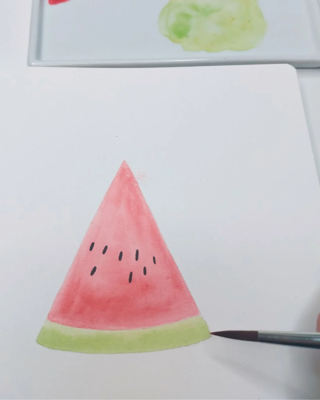 Aquarellsketch einer Wassermelone - Erster Farbauftrag