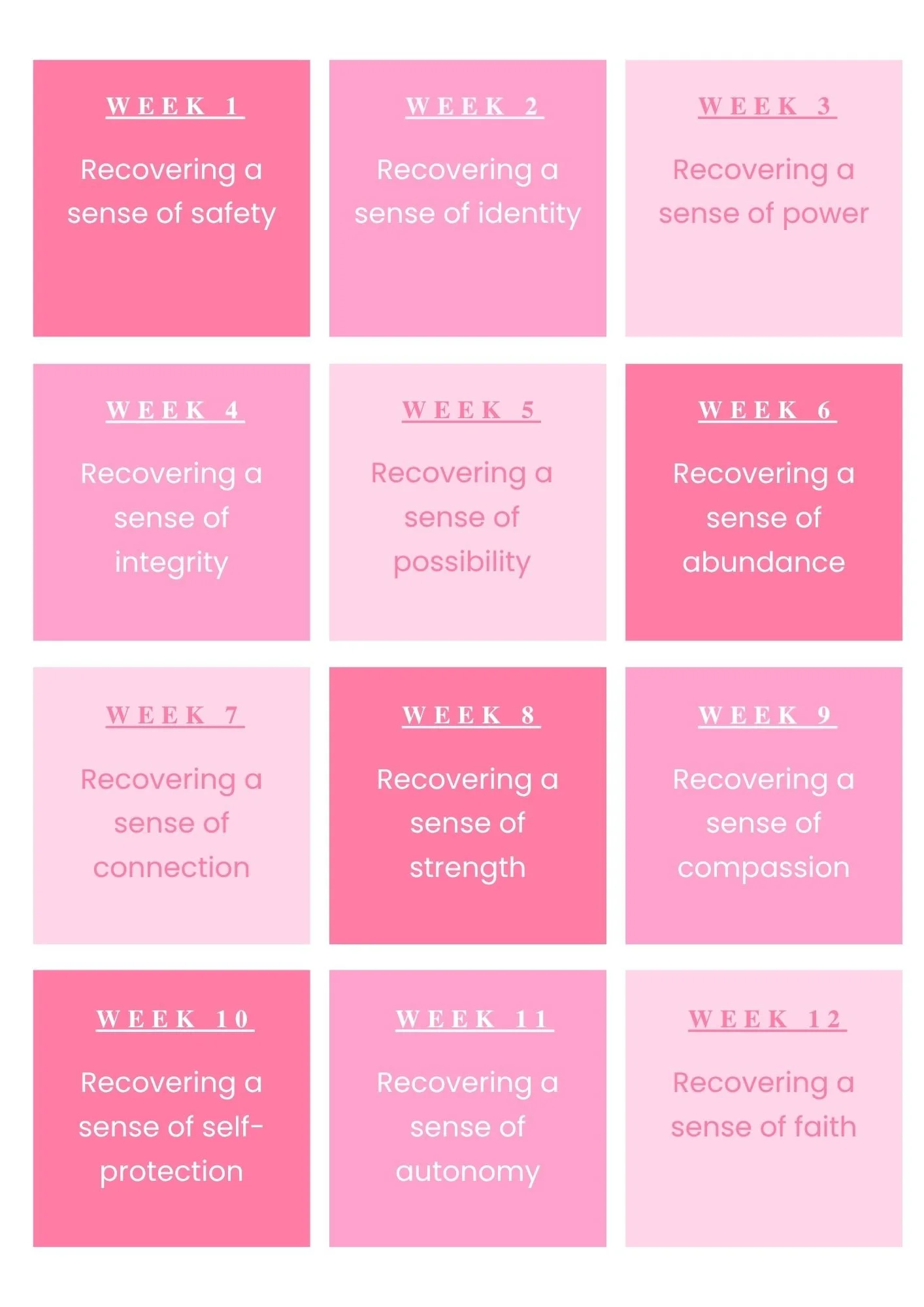 It’s more like a carefully structured 12-week course — with a new chapter, fresh prompts, and small tasks each week.