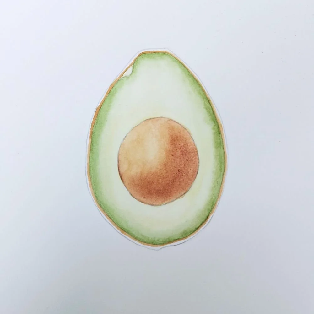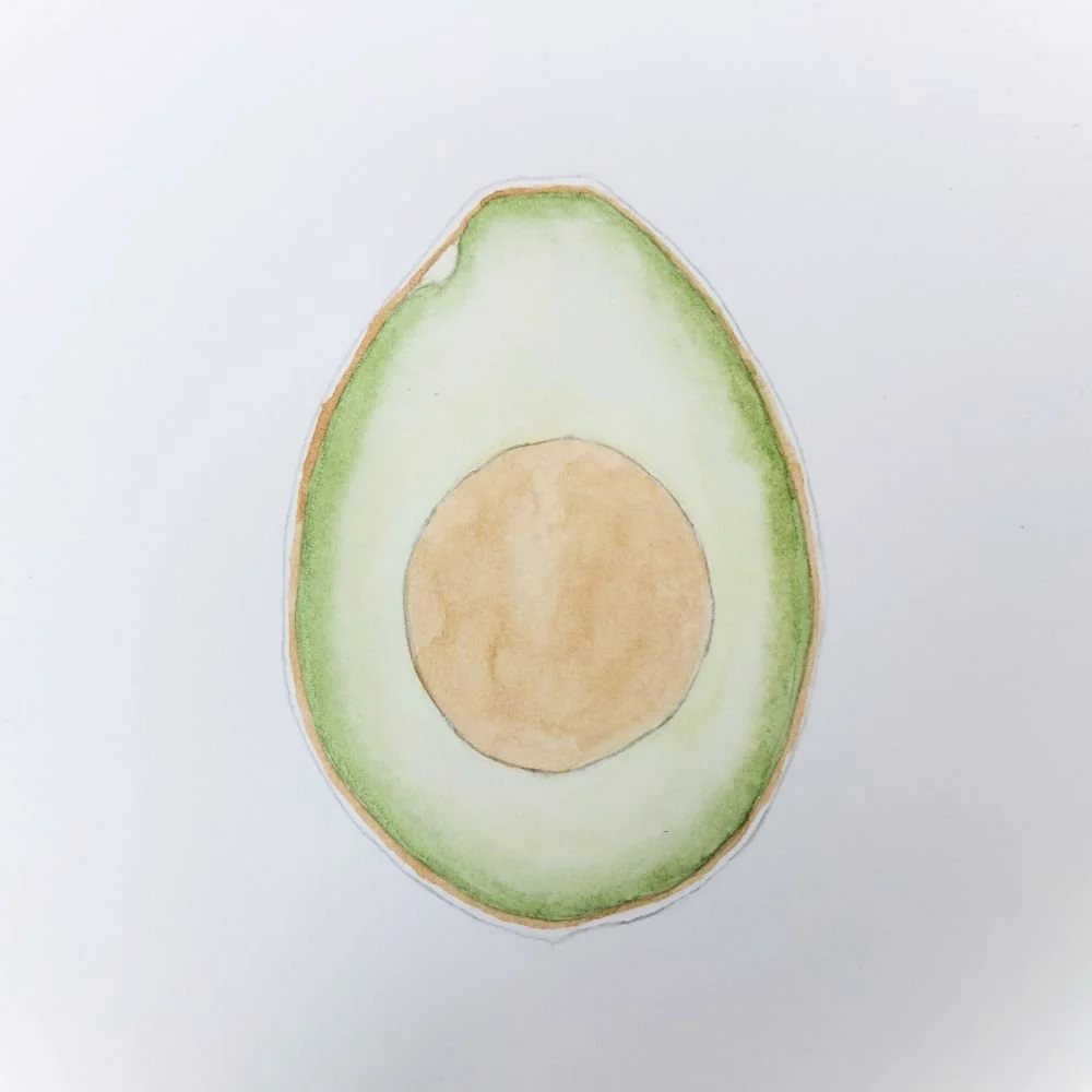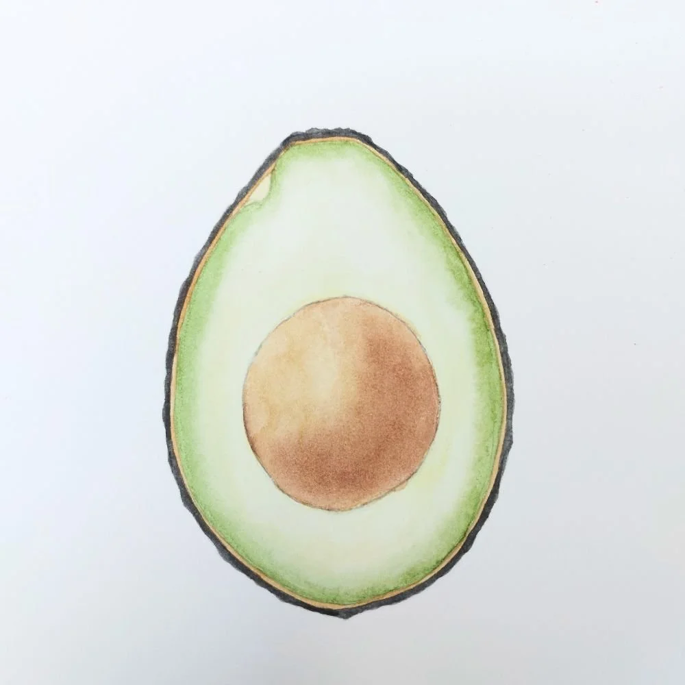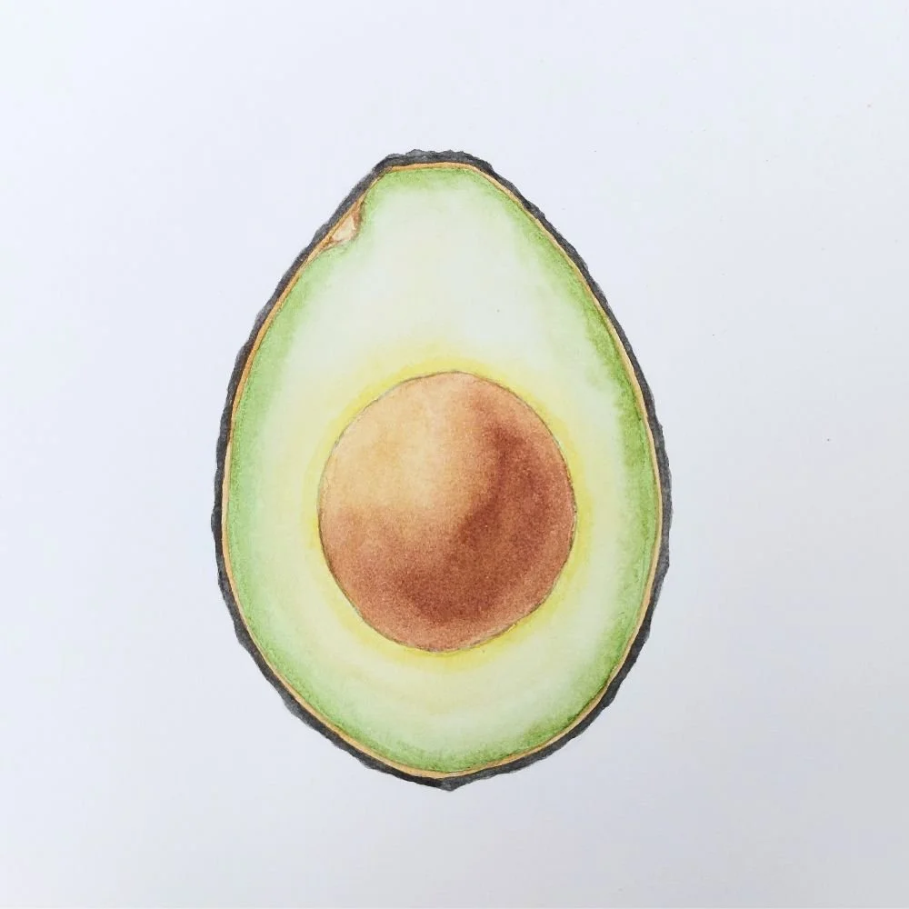 With its velvety texture, shiny seed, and soft green hues, the avocado is a beautiful subject to practice sketching and painting