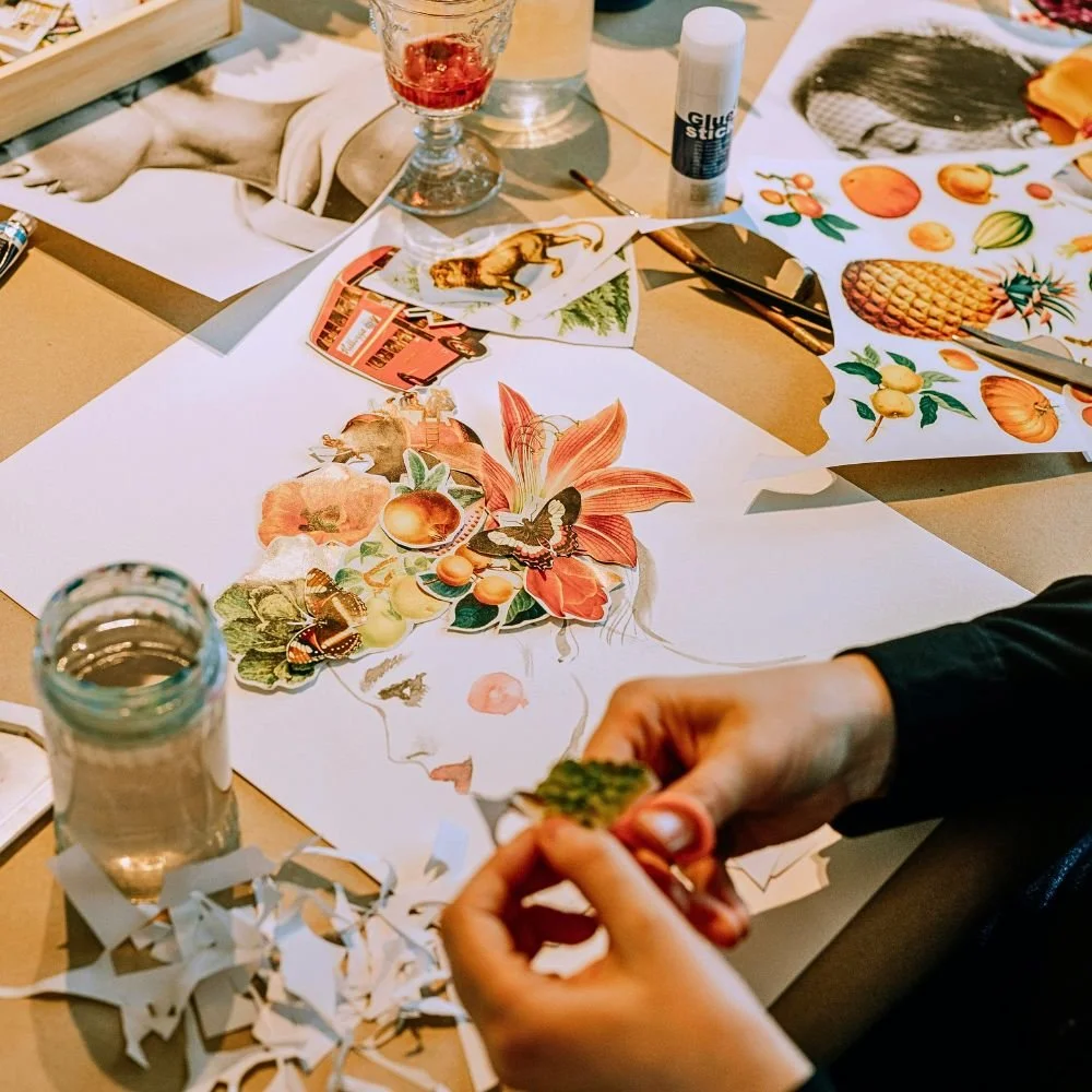 A few minutes of doodling in your sketchbook in the morning, combining collage scraps in the evening, or simply placing a piece of paper next to your coffee — these small rituals invite playfulness and gently shift our thoughts into a creative flow.